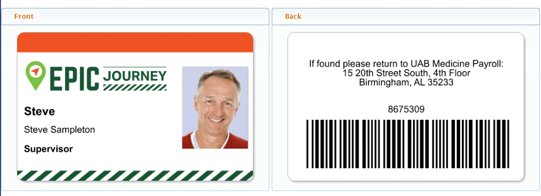 We ask that you wear this badge over your regular UAB or affiliate badge so that employees, patients, and visitors can easily recognize your role. While the badge will work at time clocks, it’s important to note that it does not provide any additional system or security access—it simply helps with identification and time tracking.